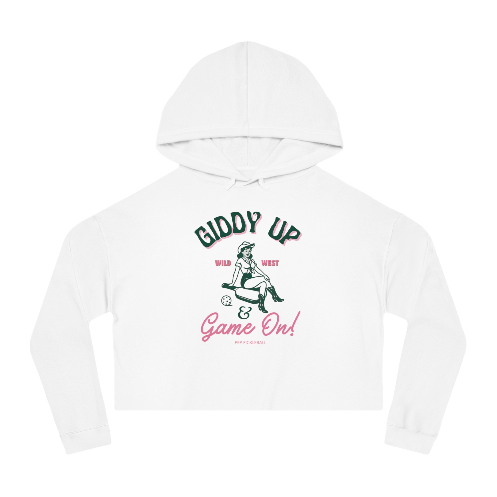 The vintage-inspired Giddy Up & Game On artwork adds a fun nod to your love of pickleball and brings a confident, playful vibe to any outfit. It pairs perfectly with high-waisted leggings, joggers, or denim for an easy off-court look that still feels stylish and intentional. It is the ideal lightweight layer for warm-ups, travel days, or relaxing at home.