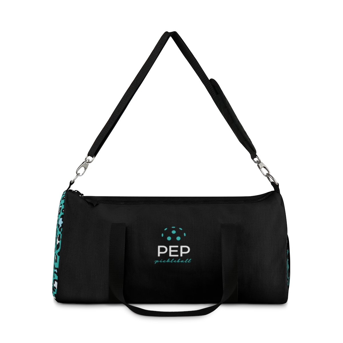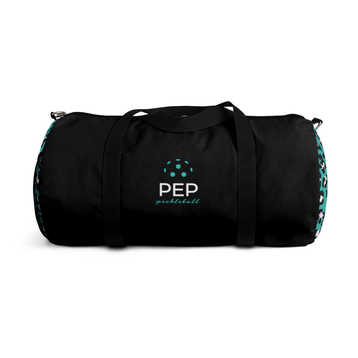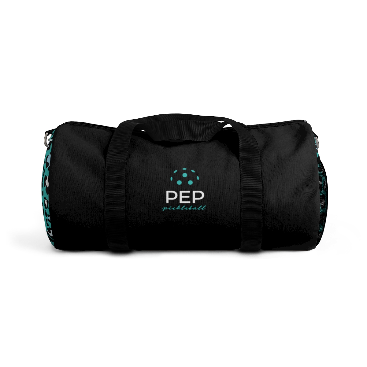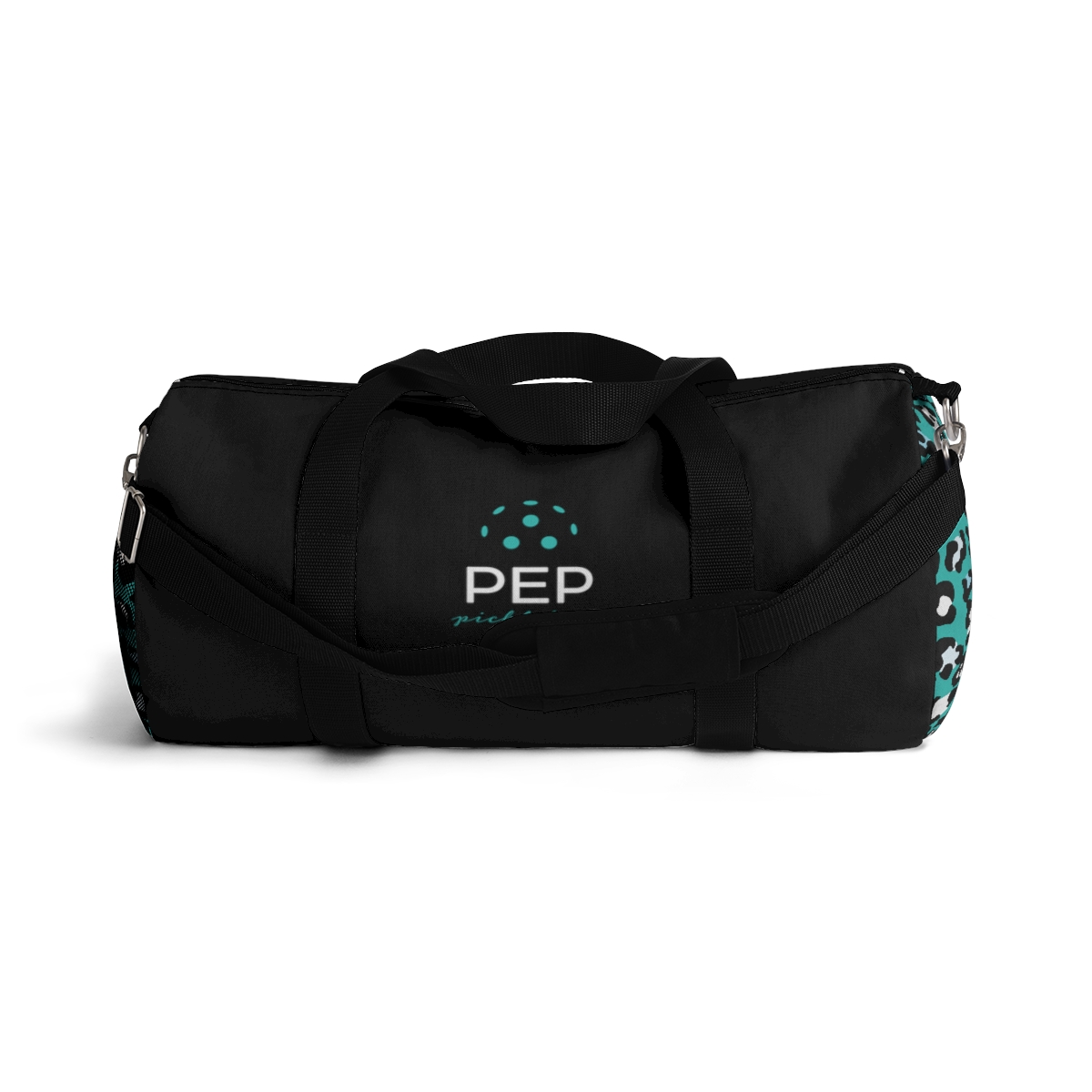 Make a statement in and out of the pickleball court with this pickleball duffel bag. With its leopard-print design and vibrant turquoise hue, this bag becomes a stylish accessory that completes your sporty chic look. Sling it over your shoulders or tote it effortlessly by the handles—carry however is convenient for you. Best of all, the signature logo design embroidered on the bag shows how proud you are to be part of the PEP community.