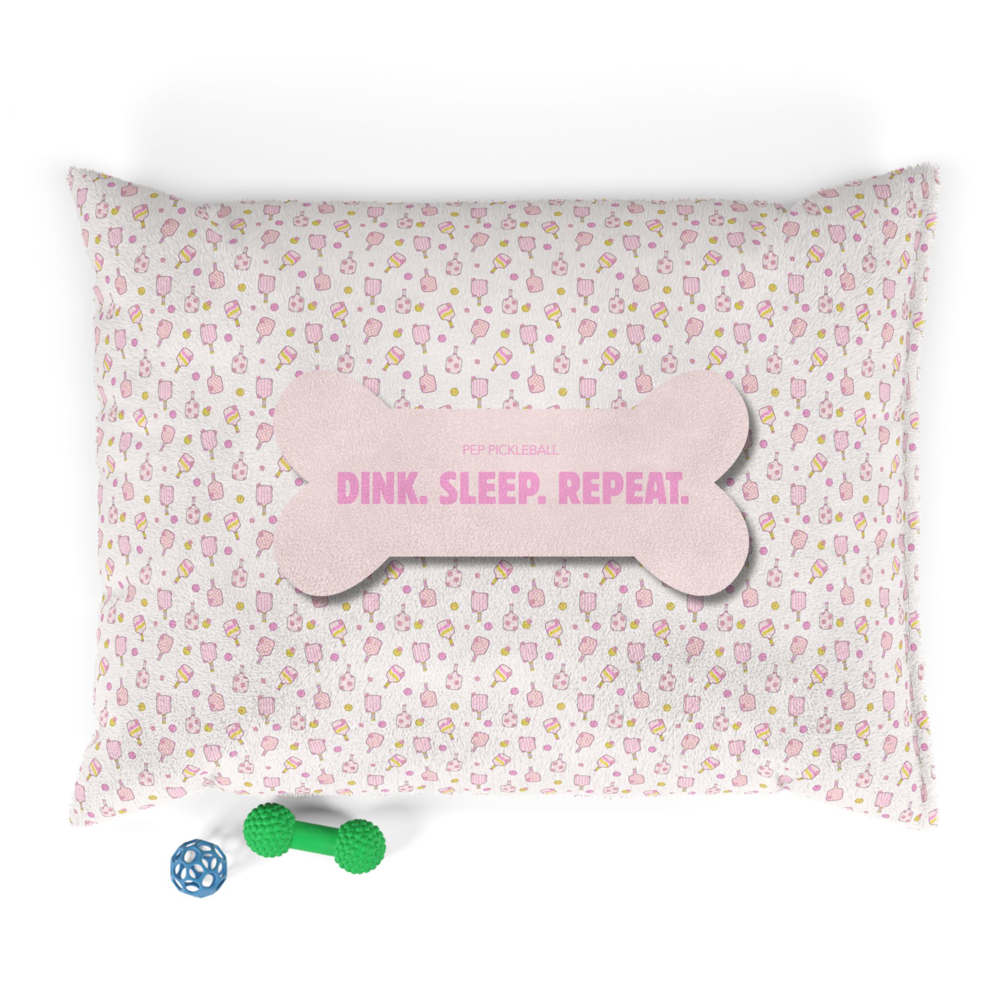 Add a soft, charming touch to your pet’s favorite lounging spot with the Dink. Sleep. Repeat. Dog Bed in the pink Courtside Cutie pattern. Plush, feminine, and quietly boutique, this bed features a coral fleece top that stays cozy under paws and a sturdy cotton duck underside that helps keep the bed from slipping on hard floors or carpet. The soft pink Dink. Sleep. Repeat. message and playful paddle inspired pattern make it an adorable pickleball dog gift for dog moms, pet parents, and anyone searching for a sweet pickleball lover gift.