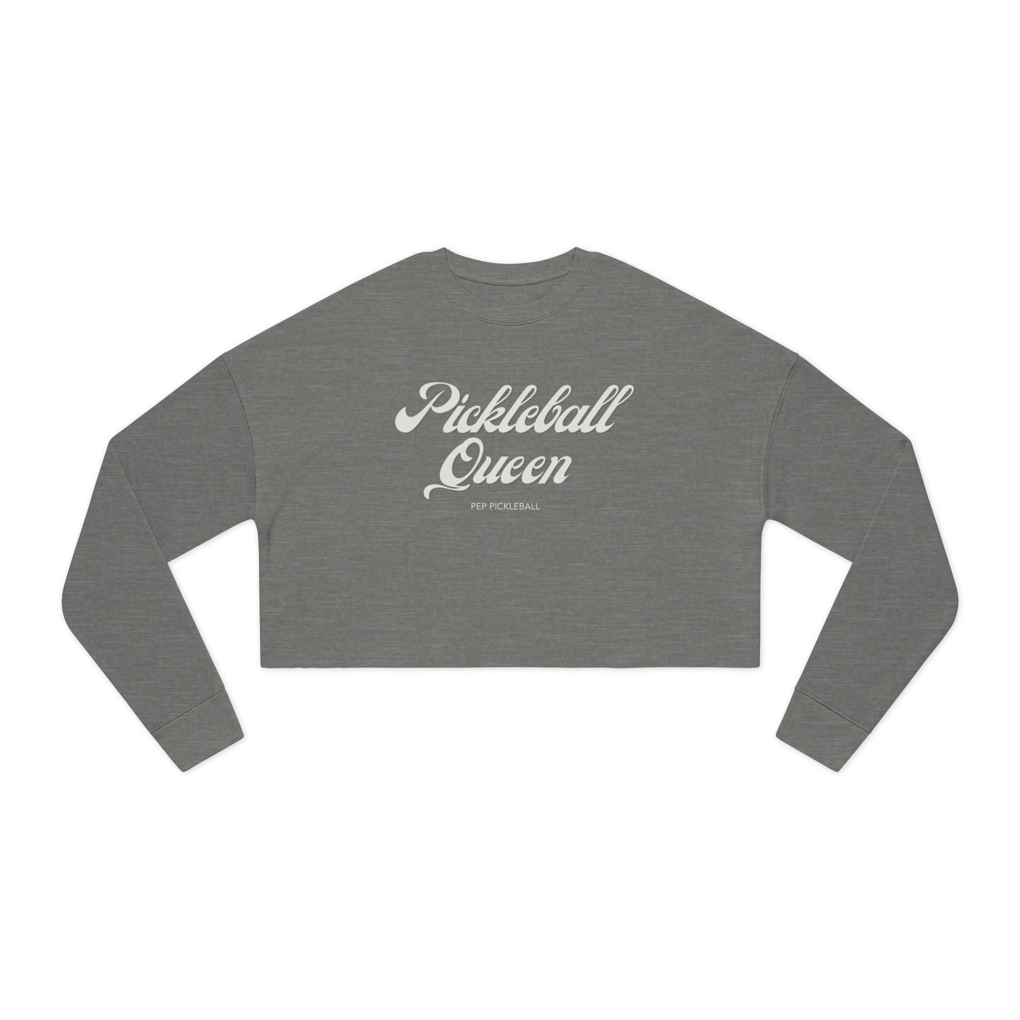 The Pickleball Queen Cropped Sweatshirt is light, modern, and effortlessly confident. Made from a soft airlume cotton blend, it feels smooth against the skin while offering the perfect amount of warmth for court days, cool mornings, and coffee runs. The relaxed drop-shoulder silhouette gives you easy movement between warm-ups, rec play, and post-match laughs.